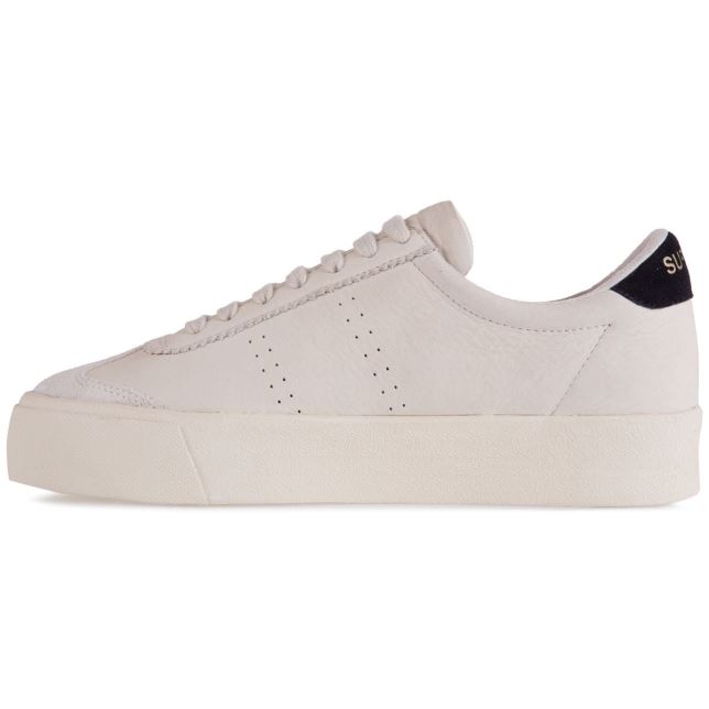 詳細: タンブルド レザーのアッパー、スエード レザーのディテール、ソールの高さ 3 Cm、バック ヒール タブにゴールドのスーパーガ ロゴ、ラバー トゥ キャップ、マイクロファイバー ライニング、天然ゴムのアウトソール。