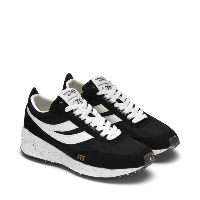 supergas 9ts は、ペットからの 100% リサイクル ナイロンと、スエード効果のあるアッパーを備えた合成皮革を使用しています。細身のシルエット、薄いパッド、形状記憶フォームを提供するスリムなつま先