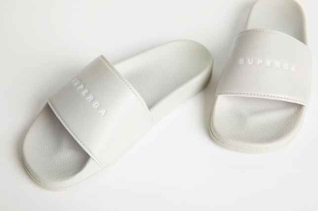 superga の新しい定番スライドは、エレガントでシンプルにアップデートされています。 1 つのスライドで快適さとスタイルを生み出す新しいポリソフト素材のアッパー。ホワイトのアッパーに小さくプリントされたスーパーガのロゴが特徴です。