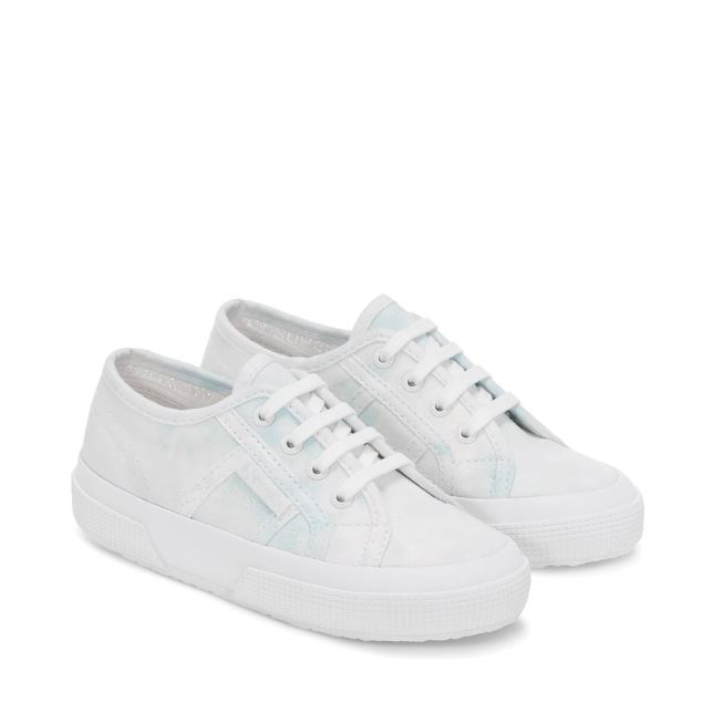 キッズ用スーパーガ 2750: 雲のようなプリントを施したコットンのアッパー、コットンのライニング、加硫天然ゴムのアウトソール。