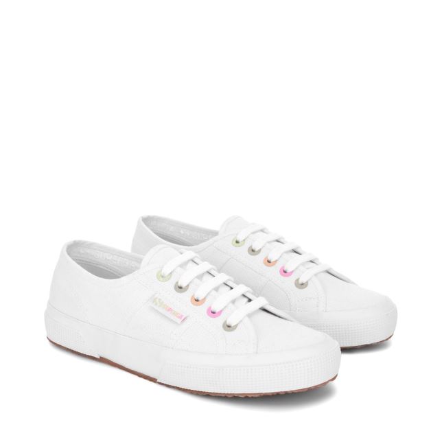 私たちのクラシックな 2750 アイコンは、パステル レインボーのディテールで最小限にアップデートされています。マルチカラーのキャンディーにインスパイアされたアイレットとレインボー ジャカードのフラッグ ピップ。