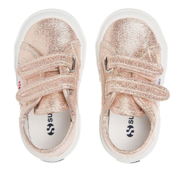 キッズ スペルガ 2750 ラメ ストラップは、ラメ生地のアッパーと通気性のあるコットンの裏地が特徴です。