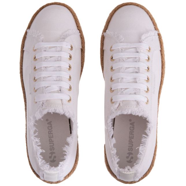 ロープに 4 Cm のプラットフォームを備えた女性用のスペルガ 2790。擦り切れたコットンのアッパーと加硫天然ゴムのアウトソール。